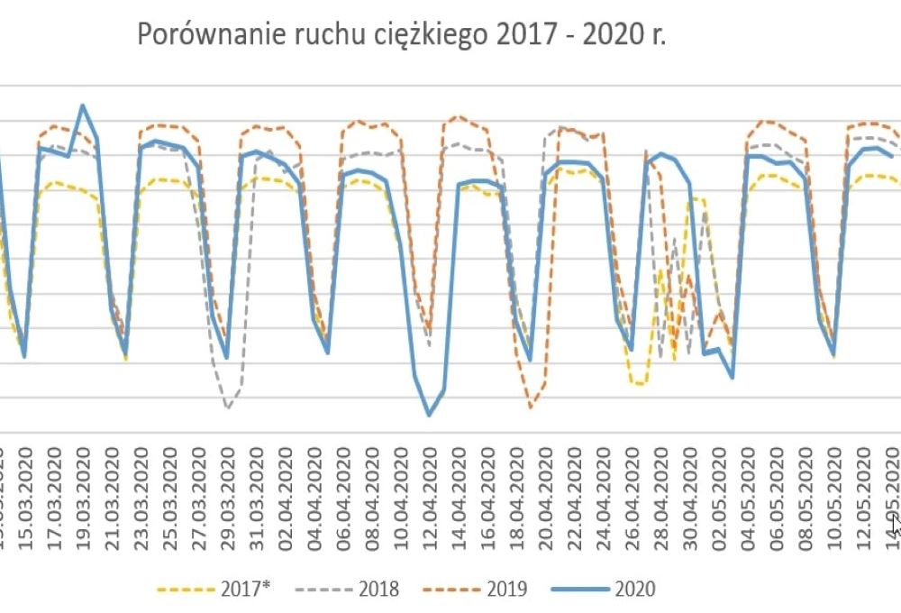 Wybrano 32 takie punkty z różnych dróg i regionów, bo kilka z autostrady A4, inne z dróg ekspresowych S 3 i S7, ale i DK 92 i 58 na Mazowszu. Dane ściągnięto za okres od 9 marca do 17 maja i porównano je z wynikami w poprzednich latach.