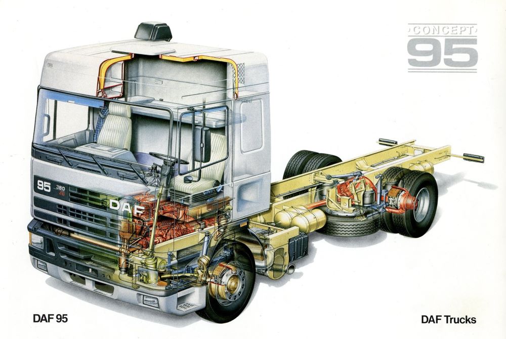 Koncepcja serii 95 powstała już pod koniec 1979 r., a w sierpniu 1987 r., gdy DAF wprowadził ją na rynek, mogła pochwalić się zupełnie nową kabiną, podwoziem, tylną osią i systemem elektronicznym dopasowanym do zmodernizowanego i sprawdzonego silnika o pojemności 11,6 litra.