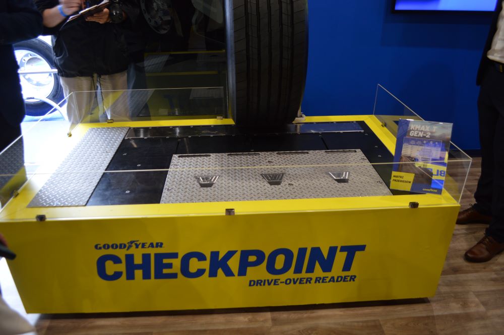 System CheckPoint to rozbudowany czytnik najazdowy firmy Goodyear, który tworzy zamontowana na ziemi metalowa płyta, wyposażona w zaawansowane kamery, lasery i czujniki, odczytujące informacje o oponie, podczas gdy pojazd nad nią przejeżdża. Dzięki wykorzystaniu zaawansowanych algorytmów interpretujących otrzymane sygnały w ciągu kilku sekund otrzymujemy dokładne informacje na temat ciśnienia w oponach, pozostałej głębokości bieżnika, obciążenia osi i całkowitej masy pojazdu – te dwie ostatnie funkcje dostępne są tylko w wersji stacjonarnej. System CheckPoint, korzystając z wbudowanych kamer, odczytuje również tablice rejestracyjne, dopasowuje dane do pojazdu i dostarcza kompleksowy raport z oznaczeniem czasu jego przygotowania. Dużą zaletą systemu CheckPoint jest to, że pozwala on flotom na zwiększenie wydajności transportowej za sprawą krótszego czasu oczekiwania na przeprowadzenie kontroli ogumienia i mniejszej liczby przestojów spowodowanych nieprzewidzianymi zdarzeniami związanymi z oponami. Dysponując informacjami o stanie każdej opony w pojeździe, można lepiej planować działania obsługowe i zakupy – to wszystko z wystarczającym wyprzedzeniem, aby zapobiec ewentualnym problemom.