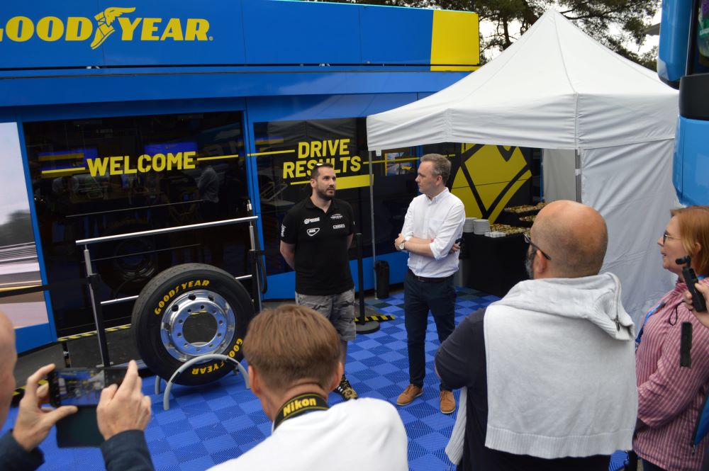 Norbert Kiss, mistrz Europy FIA rozmawia przed Show Roomem o oponach Goodyear.