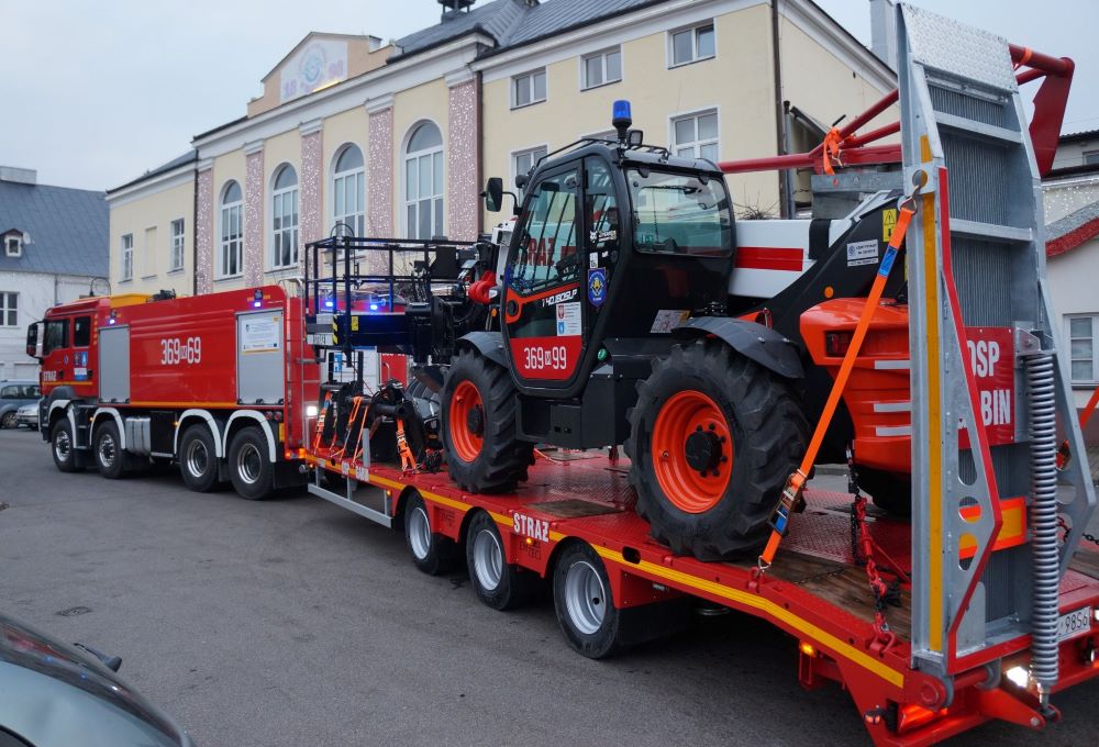 Świetnie ilustruje to Ochotnicza Straż Pożarna (OSP) Gąbin, która dwa lata temu zainwestowała w rzadko widywany nowy sprzęt: składający się z 32-tonowego wozu strażackiego MAN TGS 41.460 z napędem 8 × 8 i zbiornik na wodę o pojemności 11 000 litrów i, co nietypowe, specjalnie zmodyfikowanej ładowarki teleskopowej Bobcat T40.180SLP.