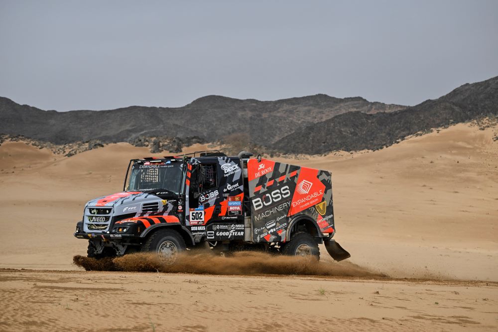 Po wczorajszym pechu , Janus van Kasteren jr. był znowu w dobrym nastroju. Pojazd Boss Machinery Team De Rooy Iveco , wystartował dziesiąty , natychmiast zaatakował i minął pierwszy punkt nawigacyjny z czwartym najszybszym czasem. Ich czas na drugim punkcie nawigacyjnym wskazał że byli najszybsi na torze i przez cały etap przewaga rosła . _ Ono wszedł bardzo płynnie i silnik działał jak w zegarku .