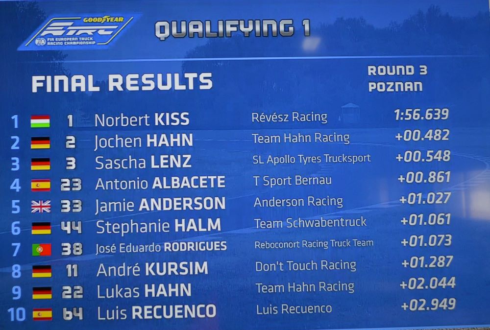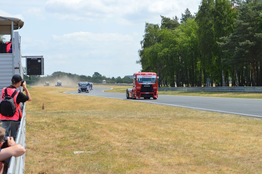 Pierwszy sobotni bieg oczywiście wygrał Kiss, za nim dojechali Hahn i Sacha Lenz. I tu widać było odwieczny pojedynek między markami MAN i Iveco. Gdy oficjalnie żaden producent nie włącza się w ten sport, tylko działy rozwoju silników pomagają w bezpiecznym podwyższaniu osiągów 12 litrowych silników. Czołówka ma zatem ok. 1200- konne jednostki sześciocylindrowe, choć Bogiem a prawdą, kto może to udowodnić? Musielibyśmy co tydzień brać motory na hamownię…