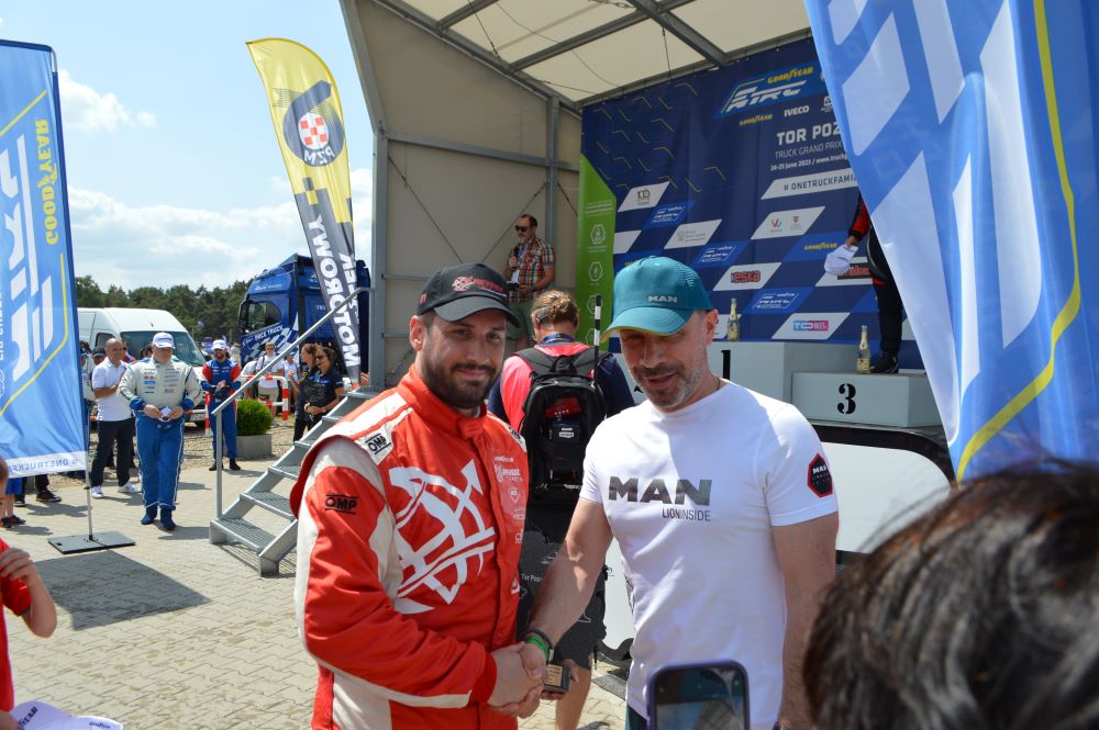 Zaraz po dekoracji, gratulacje startyjącemu na MAN-ie Kissowi złożył dyrektor MAN Polska Claus Wallenstein.