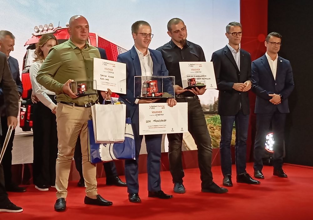 Szefowie Renault Trucks Polska wręczają nagrody zwycięzcy z Pszczyny.