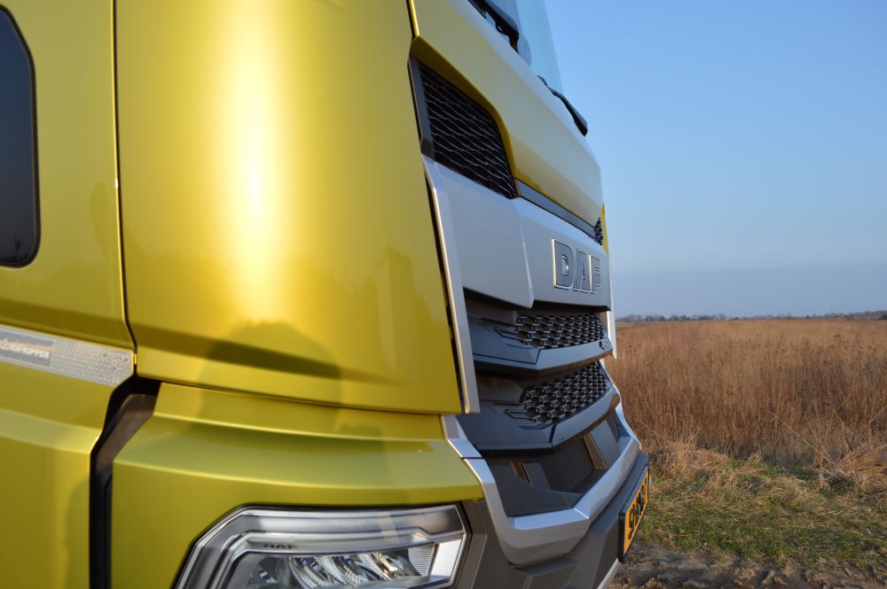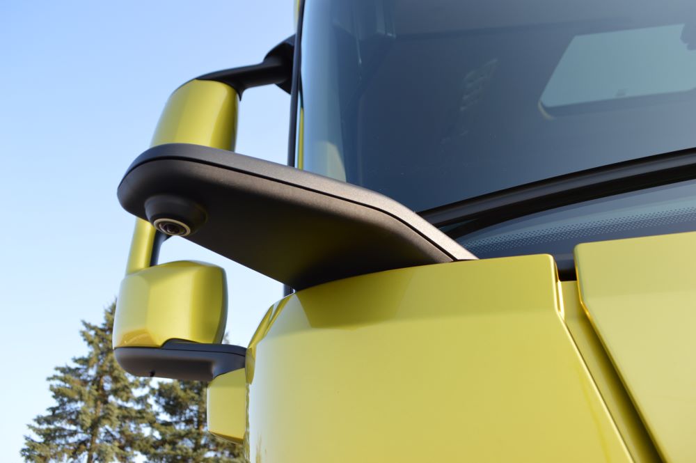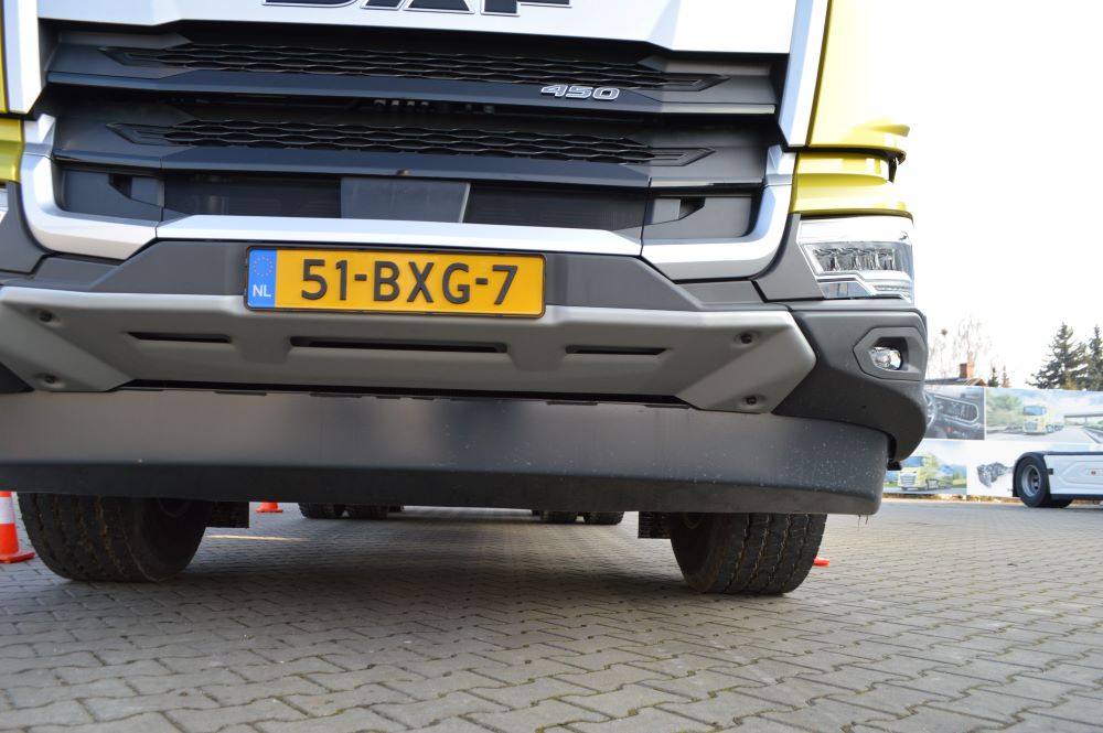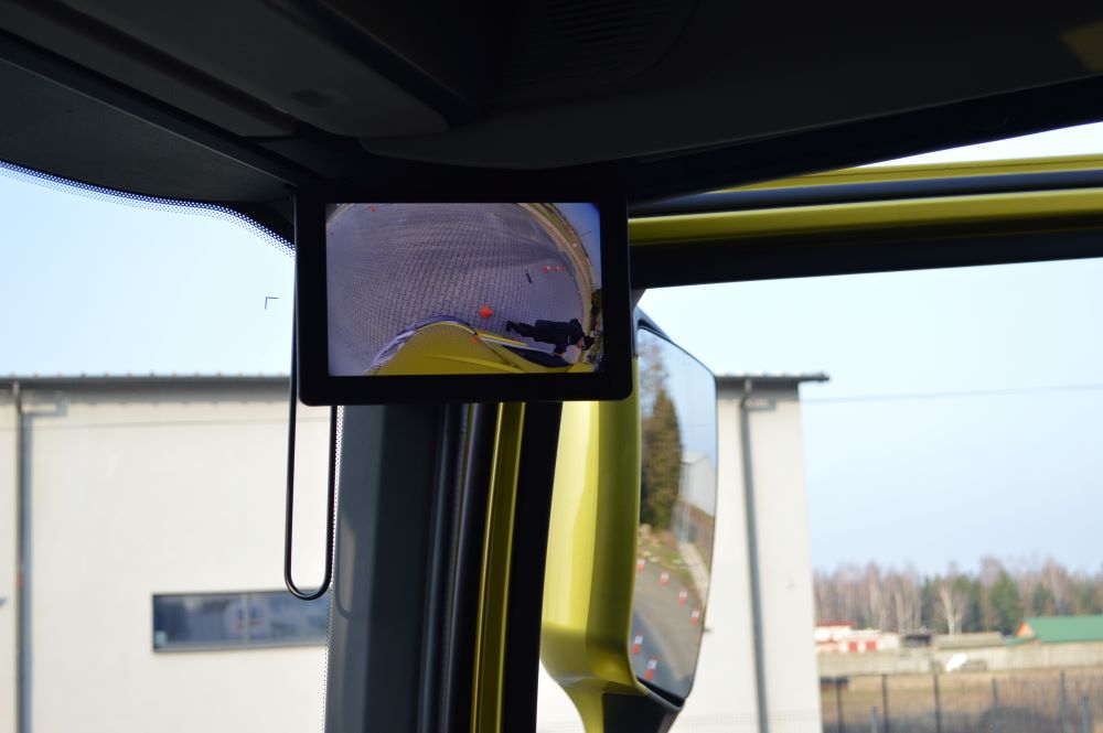 Ponieważ jednak kabina jest osadzona stosunkowo nisko na ramie, (o 17 cm do XF-a) której przednia część jest zresztą dostosowana do nowych kabin, nie udałoby się dostrzec wszystkiego co dzieje się wokół nas. Dlatego jest DAF Corner View, kamera na prawym narożniku, dająca obraz na wyświetlacz zamocowany dość wysoko na słupku A. Niemal każdy zastanawia się dlaczego ten FAT ma klasyczne, dość spore lusterka wsteczne, a obok nich kamerę szerokokątną. Lusterka są klasyczne bo takie wolą kierowcy, a ponadto prościej i taniej jest wymienić je w razie stłuczki. Natomiast kamerv, narożna i w przypadku cofania kamera tylna, która wyświetla obraz na ekranie na środku kokpitu, w sumie dają doskonałą widoczność.