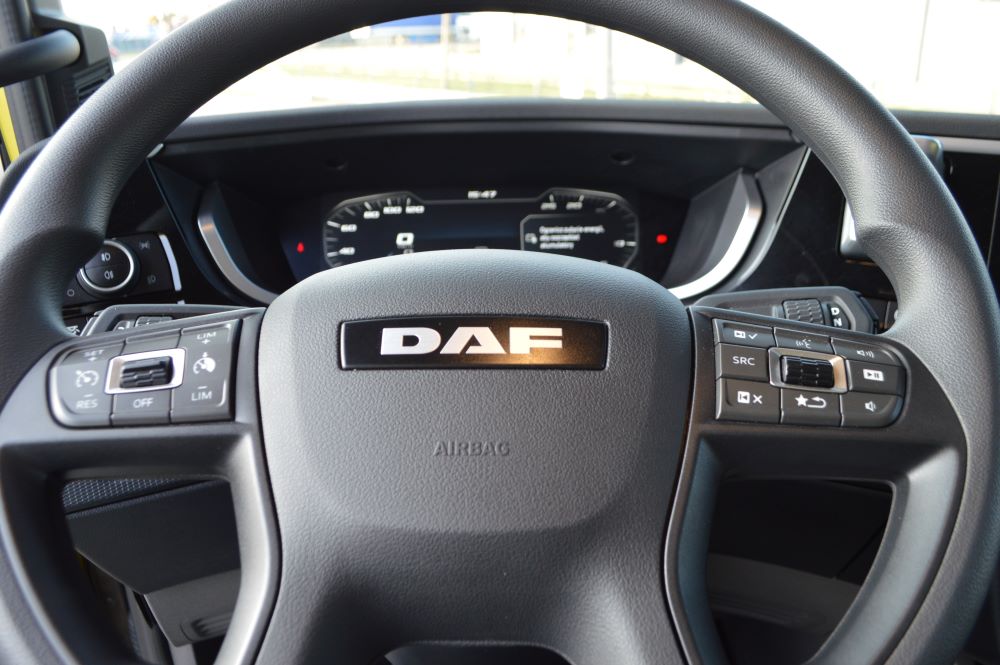 DAF chętnie pochwaliłby się dużym 12 calowym cyfrowym wyświetlaczem przed kierowcą z możliwością konfigurowania i personalizowania, zmiany zegarów z klasycznych na super nowoczesne. Albo 10 calowym wyświetlaczem infotainment (opcja) pozwalającym na 4 różne warianty używania. Ten drugi, jak najbardziej, bo kierowca czekając na załadunek i rozładunek ma czas na korzystanie z tych opcji. Ale sam główny zegar w mieście nie jest tak ważny.