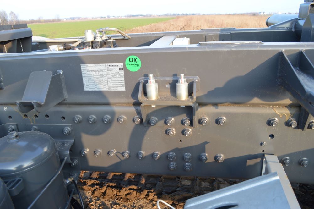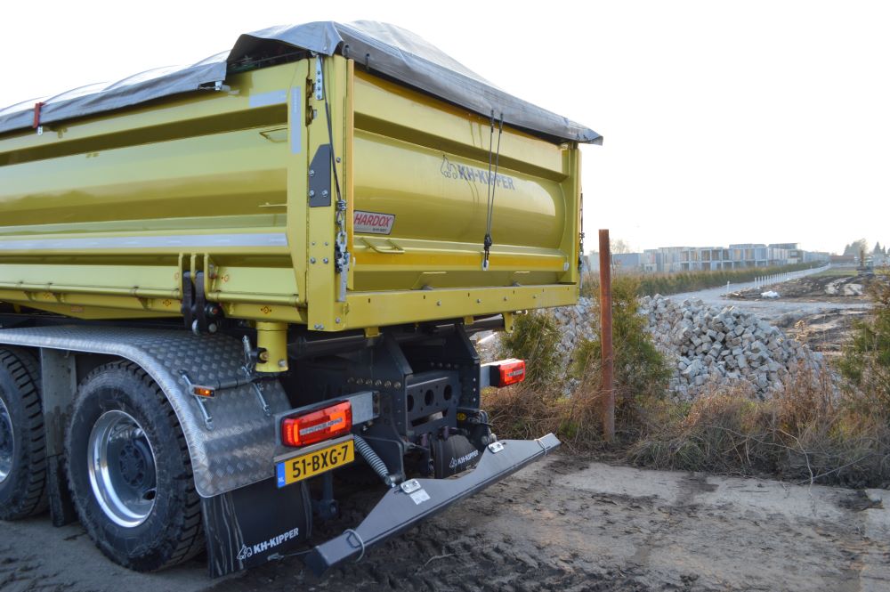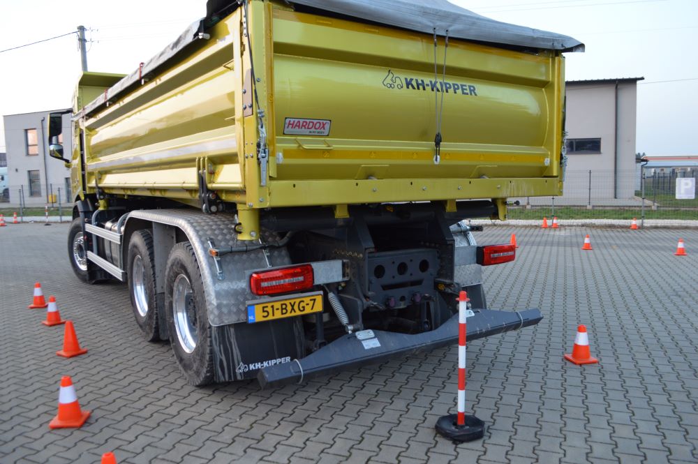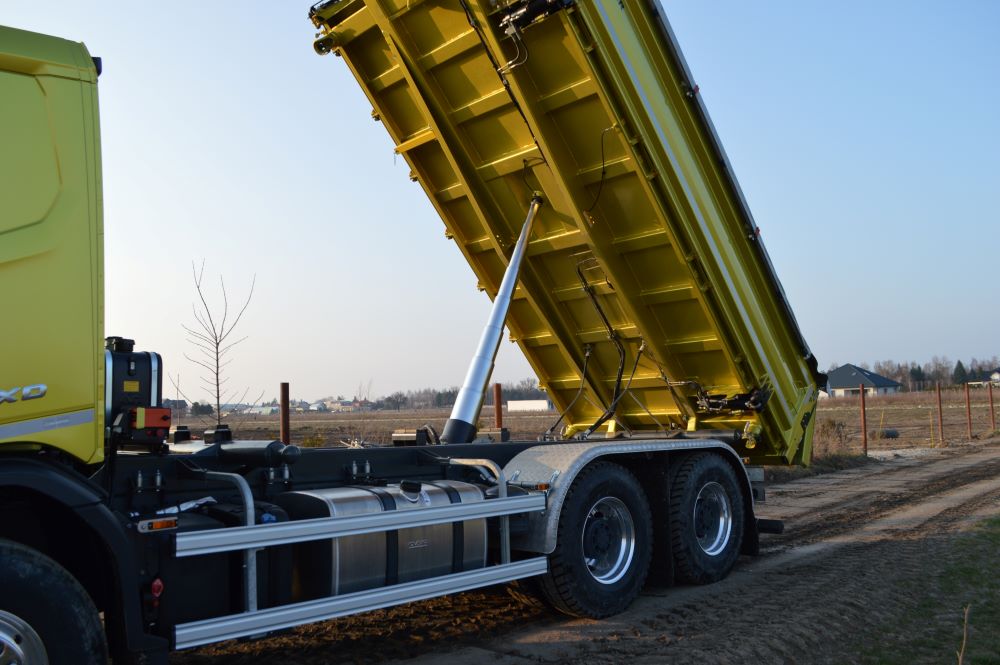 A na koniec uwaga dotycząca wywrotki KH kipper. To bardzo ważny element całości, bo od jej wszechstronności zależy wydajność pracy całego zestawu. Tu akurat mieliśmy trójstronny wywrot, w którym rozładunek na lewą stronę wykonywany jest przez automatyczną hydroburtę. Ładunek osłonięty jest automatyczną plandeką Cramaro, sterowaną z pilota.