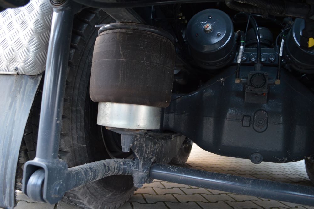 XD występuje z 2, 3 lub 4 osiami. W naszym przypadku podwozie o rozstawie osi 4,55 m ma most tandemowy 2x13 ton ze zwolnicami oraz pneumatyczne zawieszenie tylne ( 8 poduszek). Prawdopodobnie w przeciętnych warunkach wystarczyłyby zwykłe klasyczne osie, ale producent zakłada częste zaprzęganie przyczep i wtedy taka kombinacja jest lepsza.