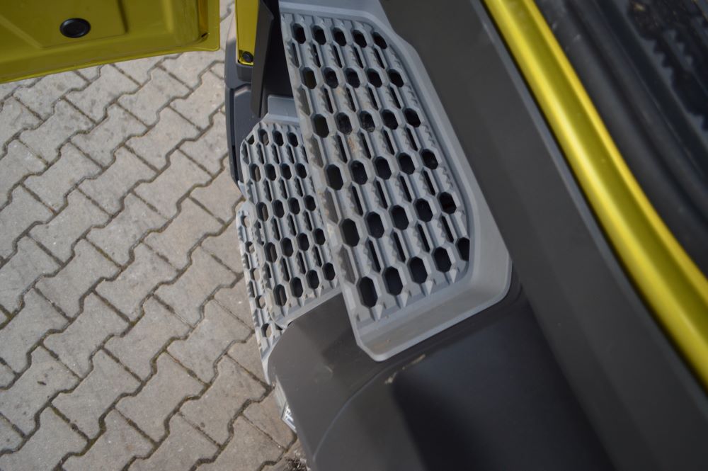 Na początku, jeżdżąc tym XD musimy uwzględnić fakt, że ma dłuższą kabinę i specyficznie wysunięty zderzak ( trzy częściowy dla prostszej naprawy) , który generalnie pozwala zaliczyć samochód do terenowych. Nietypowa jak dla terenowca wysokość kabiny i zderzaka wymusiła natomiast zamontowanie FUPSa, czyli metalowej listwy utrudniającej innym uczestnikom ruchu wjazd pod naszą kabinę.