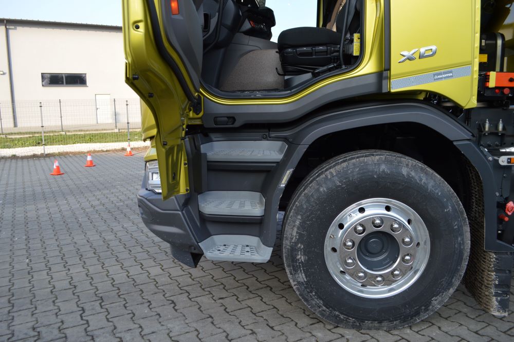 W praktyce większość ciężarówek XD ma tylko dwa stopnie wejściowe, ale ten egzemplarz jest bardziej budowlany niż dystrybucyjny. Masa techniczna wynosi 33 tony, choć oczywiście rejestrowany jest na 26 ton. Zatem ładowność wynika z masy własnej , a jest sporo możliwości manipulowania, od masy tylnych mostów, przez zbiorniki paliwa, aż po wyposażenie.