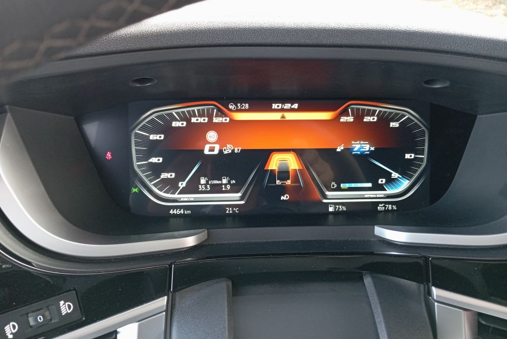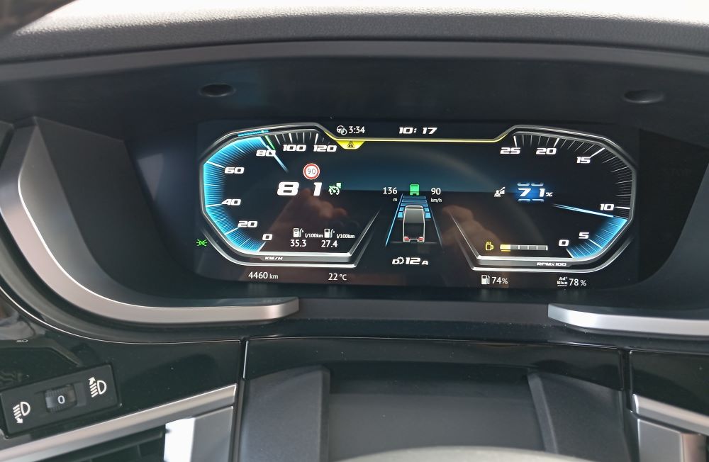 Widać że silnik utrzymuje 900 obrotów, ważniejsze jednak - jak długo.U góry żólte ostrzeżenia systemu wykrywania zmęczenia.
