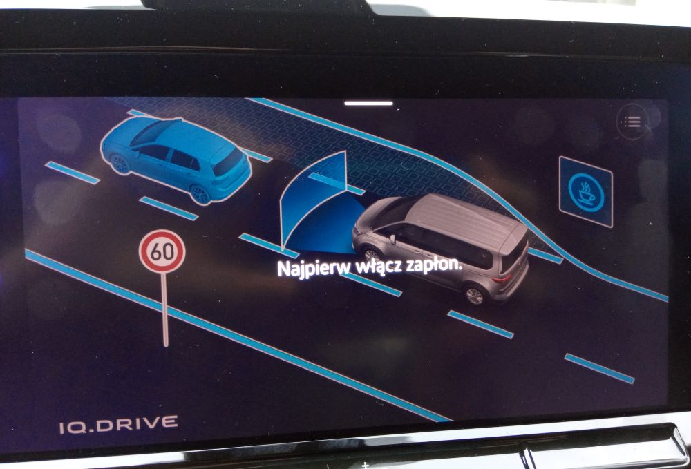 Multivan ma system zapobiegający zjechaniu z pasa ruchu Lane Assist, który jednak jest dość leniwy, w każdym razie trzeba mocno najechać na linię by zaczął reagować. Przy tego typu zachowaniach często pojawia się też komunikat ostrzegający –„ jedź środkiem pasa” !