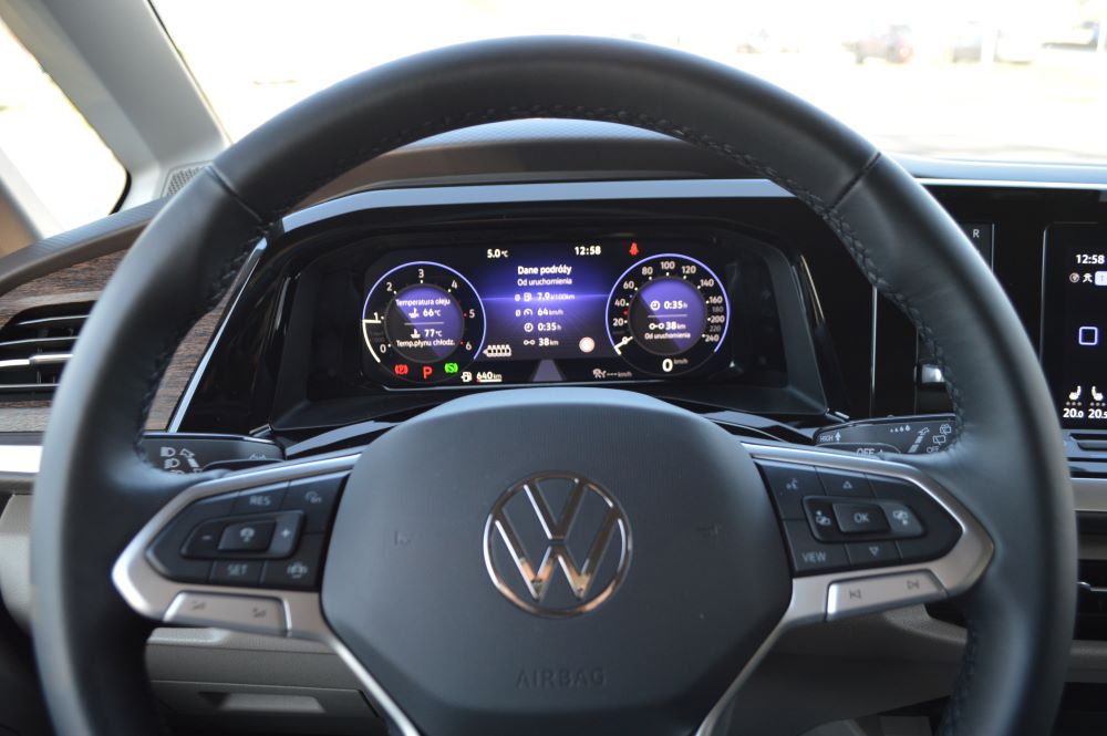 Jak to jest u VW, Multivan może występować w kilku wersjach wyposażeniowych od zwykłego Multivana, przez Life, Style aż do Energetic. Akurat pojazd testowany należał do rodziny Style, co zauważalne było np. po dwóch bocznych drzwiach domykanych elektrycznie, automatycznie składanych lusterkach, nowym stoliku wewnętrznym, wyświetlaczu HUD, reflektorach LED Matrix, i tylnym spojlerze.