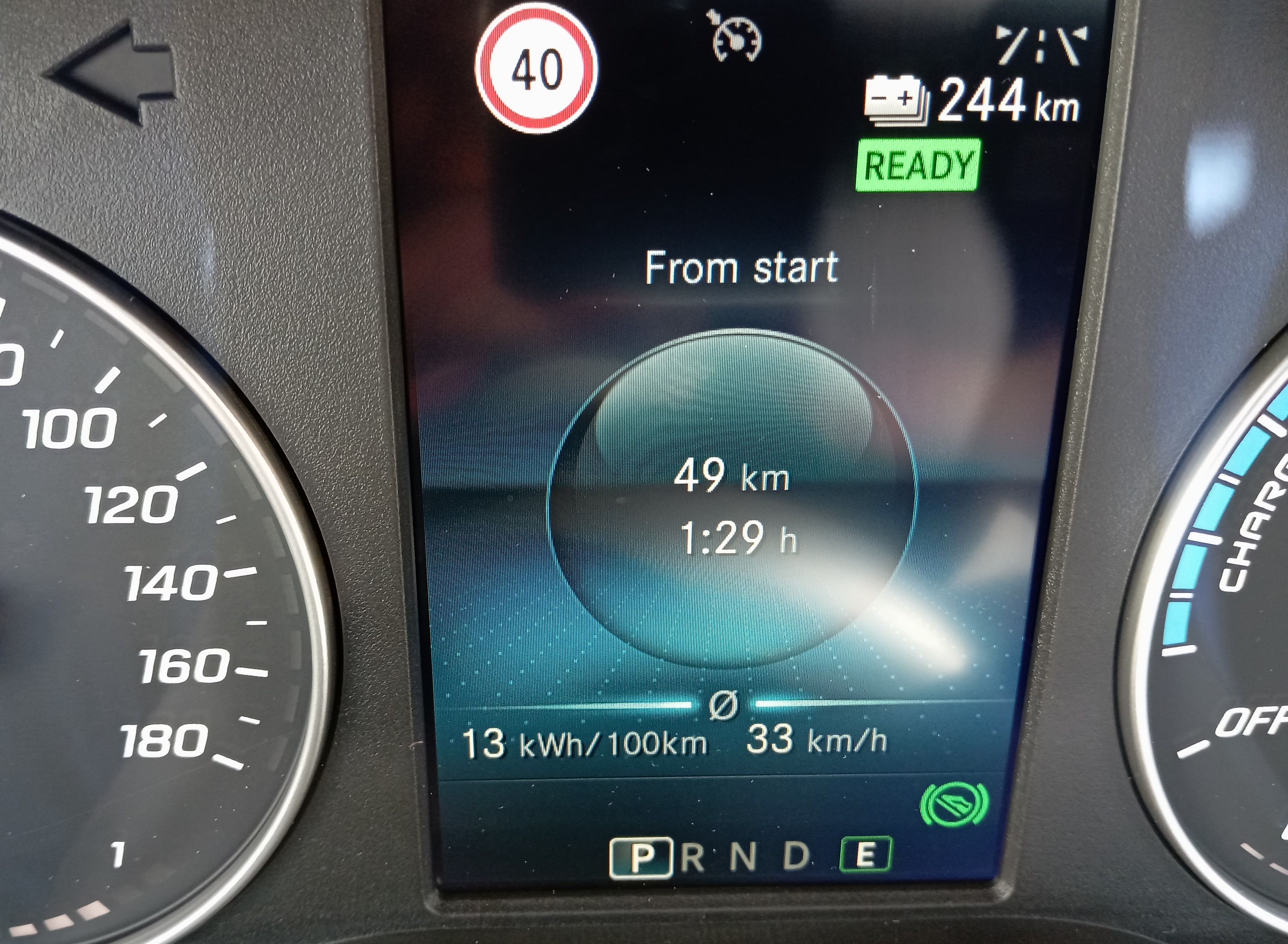 Jazdy testowe Citanem odbywały się w dość szczególnych warunkach bo w winnicach wokół Stuttgartu oraz małych miejscowościach z ograniczeniami prędkości. To już narzucało spokojniejszą, wręcz dość wolną jazdę (sporo podjazdów) więc o wynikach w kontekście zużycia mogły decydować np. ustawienia jednego z trzech poziomów rekuperacji. Nawiasem, połączenie zmian tych trybów z lewarkiem załączania napędu nie jest zbyt wygodne, wolałbym osobny przełącznik.