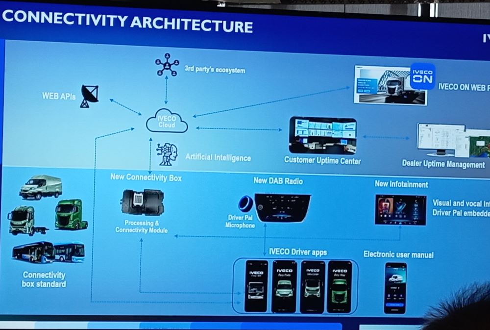 Nowy system multimedialny Infotainment z 10-calowym, kolorowym wyświetlaczem jest zintegrowany z centralną częścią deski rozdzielczej i oferuje nowe funkcje podnoszące doświadczenie kierowcy. Funkcja bezprzewodowego odzwierciedlenia smartfona daje możliwość korzystania z aplikacji w telefonie na ekranie w pojeździe, a zdalne sterowanie funkcjami w kabinie: włączaniem i wyłączaniem światła, operowanie oknami, zarządzanie klimatyzacją, które zostało zintegrowane z łatwą w konfiguracji usługą IVECO Driver Pal. W nowym systemie Infotainment kierowca ma od tej pory również możliwość korzystania z zaawansowanych usług nawigacyjnych Tom Tom Live i planowania najlepszych tras w oparciu o warunki drogowe w czasie rzeczywistym.