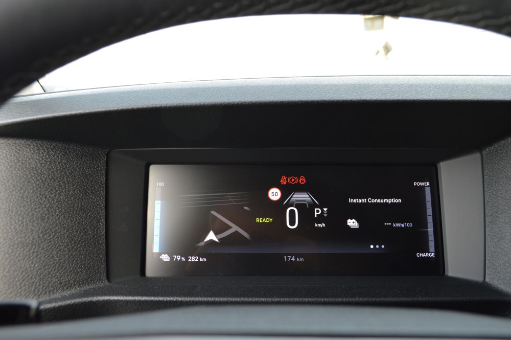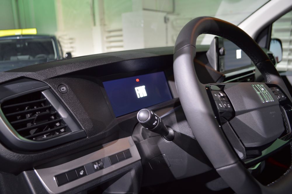 Następny pojazd którym jechałem to eScudo, czyli kuzyn Jumpiego, Experta albo Vivaro. Oczywiście odczuwa się, że jedziemy większym samochodem, w końcu ma ładowność do 1400 kg (elektryk 1250). Na plus zaliczamy doskonała widoczność boczną wynikającą m.in. z pojedynczej szyby w drzwiach. Minusem jest wysoka deska rozdzielcza. A w niej znajdujemy dwa wyświetlacze podejrzanie podobne do tych z kompaktów. Tyle że na ekranach (obudowanych prościej) mamy inne dane, inne symbole. Nawet inną kolorystykę. Po lewej stronie głównego wyświetlacza znajdujemy małą nawigację czyli mniejszą wersję głównej nawigacji z wyświetlacza na środku kokpitu.