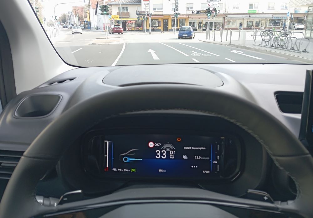 Od niedawna jazda samochodami użytkowymi jest możliwa zgodnie z zasadą tzw żeglowania. Chodzi o takie posługiwanie się pedałem gazu, by zużyć mało energii. I w Combo oraz jego kuzynach można żeglować. Naciskam spokojnie gaz, rozpędzamy się do 50-60 km/h i puszczam gaz. Całkiem lub w 90 procentach. I żeglujemy. Co znaczy, że jedziemy nadal 50-55 km/h, a na ekranie zużycie energii wynosi albo „O” albo 3-5 kWh.