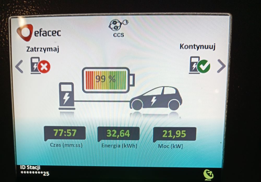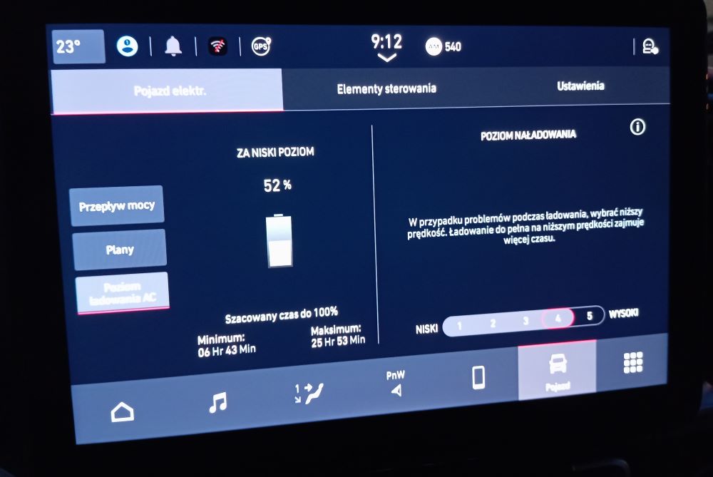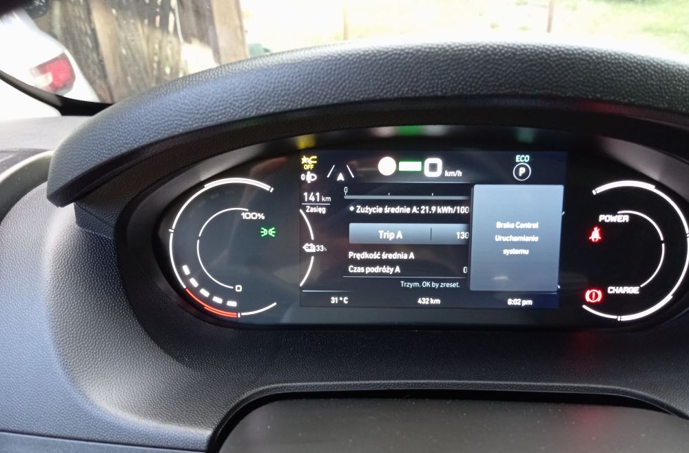 Tu ciekawostka, średnio komputer podawał, że nadal mam 48 proc. pojemności baterii, co daje 213 km zasięgu. Wieczorem komputer wyświetlił już nawet 50 procent baterii.