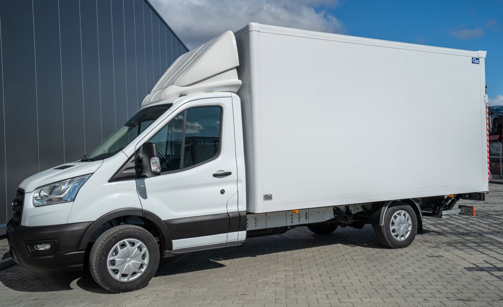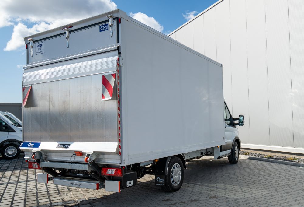 Ford Transit z zabudową kontenerową i windą załadowczą