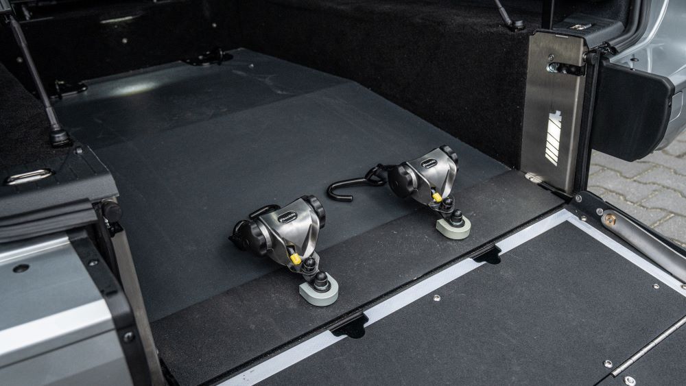 Uzupełnieniem adaptacji jest komplet pasów bezpieczeństwa. Dwa przednie napinane elektrycznie oraz dwa tylne z napinaczami ręcznymi mocują wózek. System uzupełnia trzypunktowy pas bezpieczeństwa dla osoby na wózku. Warto podkreślić, że w tego rodzaju zabudowie oryginalne tylne fotele nie zostają zdemontowane.
