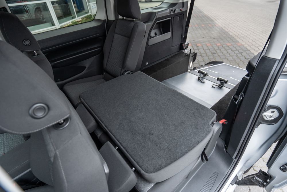 Tylna część zabudowy została zaadaptowana do przewozu osoby poruszającej się na wózku. Na podłodze zostały zamontowane między innymi listwy i zapięcia oraz atestowane pasy mocujące. Samochód został ponadto wyposażony w wykonaną ze wysokiej jakości stali windę dla wózków firmy BraunAbility. Nośność tego urządzenia to 400 kg.