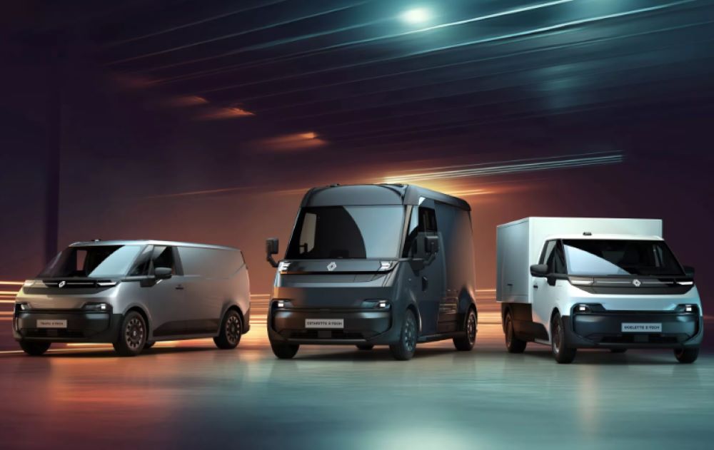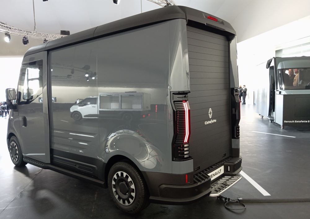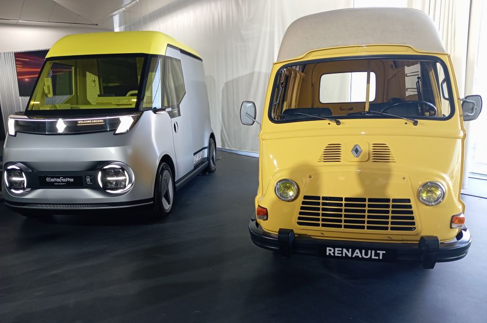 RENAULT ESTAFETTE E-TECH: Bardzo przypomina samochód koncepcyjny o tej samej nazwie zaprezentowany we wrześniu ubiegłego roku. Jest to pierwszy pojazd zaprojektowany od początku do końca tak, aby odzwierciedlał specyfikacje i wrażenia kierowcy z określonego obszaru działalności: operacji miejskich. Estafette E-Tech to pojazd o nowoczesnym i przełomowym wzornictwie. Jego nazwa jest hołdem dla vana Renault, który zrewolucjonizował swój segment rynku w 1959 roku, przyjmując układ z napędem na przednie koła w czasach, gdy samochody osobowe tej marki miały nadal napęd na tylne koła. W latach 1959–1980 wyprodukowano ponad pół miliona vanów Renault Estafette.