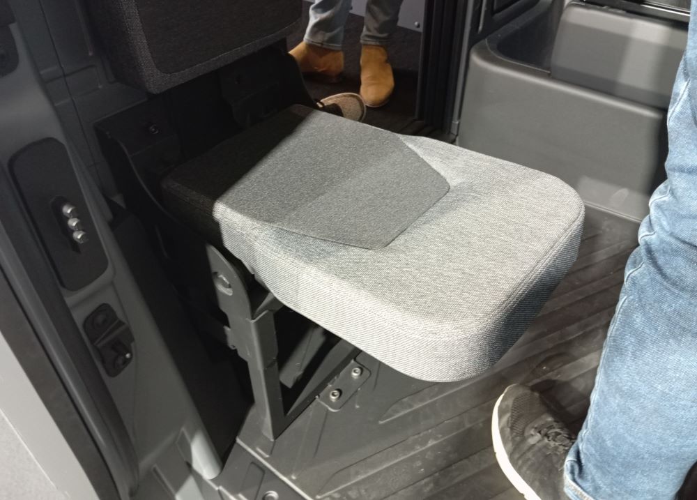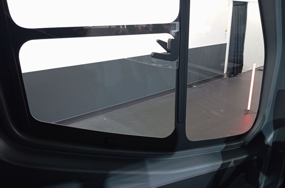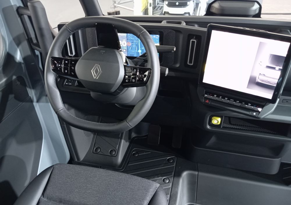 Umieszczenie układu napędowego z tyłu umożliwiło przesunięcie kabiny do przodu, jednocześnie tworząc nadwozie typu one-box , którego aerodynamika jest dodatkowo zoptymalizowana dzięki opływowym relingom dachowym. W oparciu o najlepszy kompromis między aerodynamiką a pojemnością, relingi zwężają się lekko ku tyłowi, co uzupełnia duży spojler z dwoma bocznymi deflektorami na drzwiach. Yannick Bignon, dyrektor ds. projektowania LCV, Renault ; kokpit charakteryzuje się solidną deską rozdzielczą w kształcie rury, biegnącą od jednej strony kabiny do drugiej. Podczas gdy rurowy kształt jest ponadczasowy, deska rozdzielcza jest również niezwykle nowoczesna z dwoma ekranami: 10-calowym zestawem wskaźników i 12-calowym ekranem centralnym skierowanym w stronę kierowcy (X°). Siedzenia są obite mieszanką szarej i niebieskiej tkaniny dżinsowej Zeta, z żółtymi przeszyciami na szarej i białej na niebieskiej. Za deską rozdzielczą, między „rurką” a podstawą przedniej szyby, przewidziano dużą przestrzeń do bezpiecznego przechowywania wszelkiego rodzaju przedmiotów, takich jak notatnik, kurtka lub notatnik.