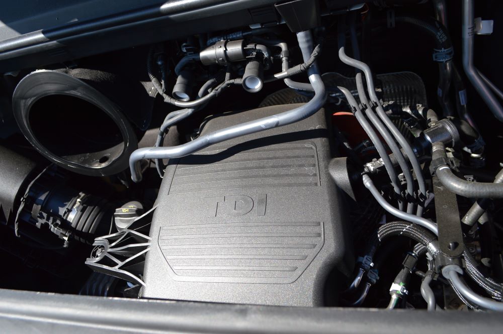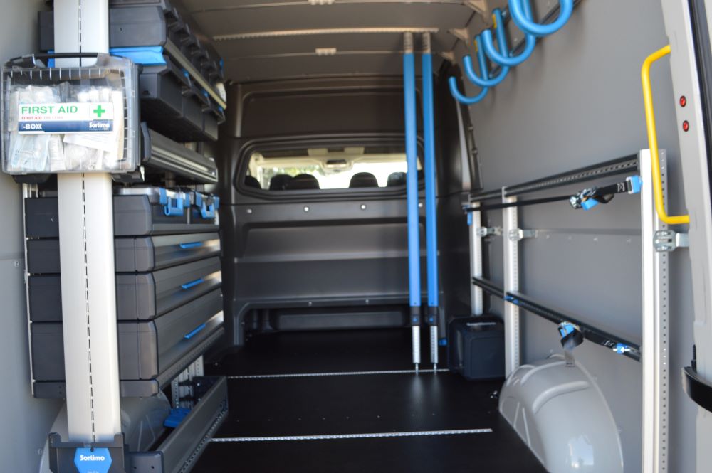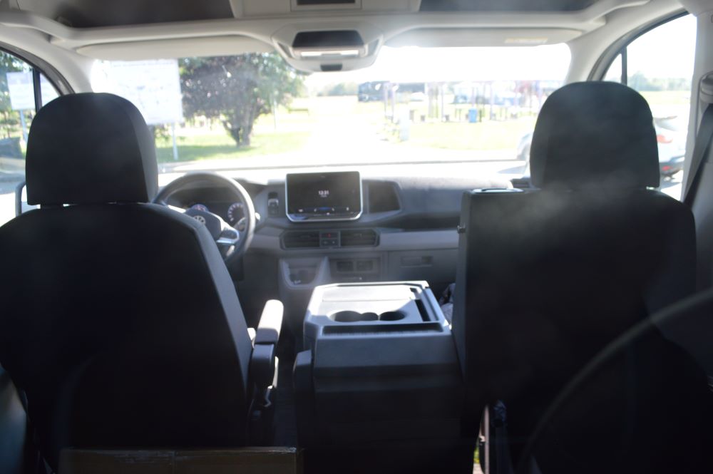 Ponieważ podstawowe składniki samochodu VW pozostały bez zmian, należy tylko przypomnieć, że w wersji furgonowej ma on 4 długości i 3 wysokości. A ten konkretny egzemplarz testowy jest jednym z największych, bo przy rozstawie osi 4490mm ma długość 6836mm. Gdyby to był klasyczny furgon, ładownia mieściłaby ok. 18 m sześciennych. Ale to rodzaj mobilnego warsztatu czyli samochód przewożący 7 osób, a za nimi oferujący zaplecze do różnych prac. Wyposażenie MobilCar typu Snoeks (Sortimo) jest jedną z propozycji zabudowy, jaką VW przygotował z partnerami zabudowującymi.