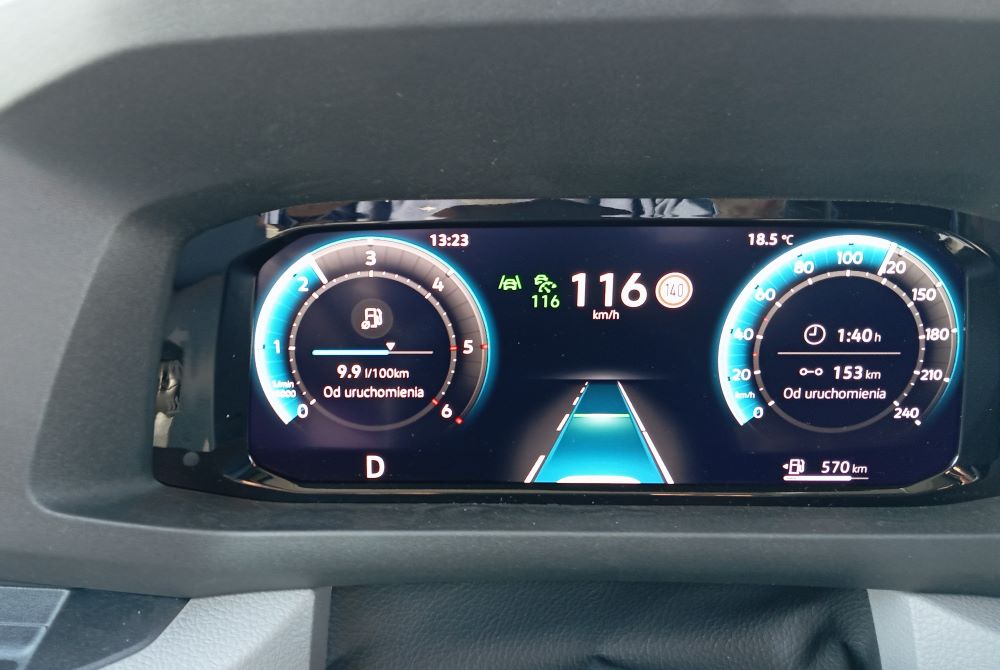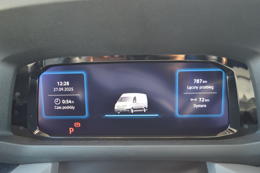 Obydwa mają swój udział w czymś co nazywamy jazdą autonomiczną, na razie tylko częściowo. Akurat asystent utrzymania pojazdu na środku pasa ruchu działa w tym samochodzie poprawnie. Pamiętam, że 10 lat temu budził kontrowersje gdy VW zamontował go w pierwszych Crafterach. Lekko, niemal niezauważalnie zawraca auto z linii namalowanych na asfalcie. Natomiast ostrzegacz przed awaryjnym hamowaniem nie tylko hamuje, gdy zanadto zbliżamy się do poprzedzającego samochodu, ale i jednocześnie wyświetla na ekranie kolorowe alerty. Obie funkcje zasługują na dobre oceny. Natomiast oceny czujnika zmęczenia nie mogłem prawidłowo dokonać, bo po inicjalnym zadziałaniu na początku jazdy, chyba zrozumiałem jaki jest algorytm jego działania i później nie dopuszczałem do następnych interwencji.