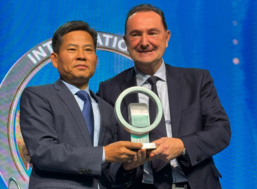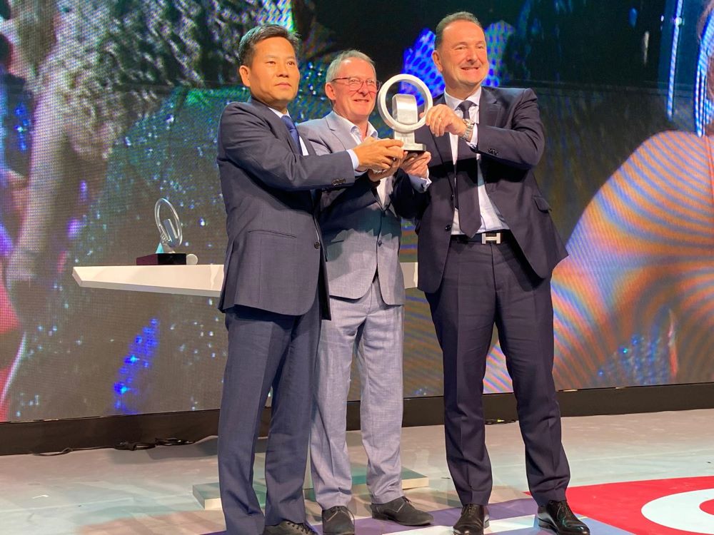 Marc Hedrich , prezes Kia Europe, a także Sangdae Kim, wiceprezes wykonawczy i szef działu PBV w Kia Corporation, byli obecni na uroczystej gali Solutrans i na scenie, aby odebrać trofeum z rąk Jarlatha Sweeneya.